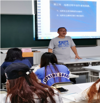 2019年9月16日上午,yl23411永利(集团)有限公司官网在建筑装饰楼313教室随堂开展了“立德垂范”党员示范课活动。本次示范课主要内容为“纪录片的选题”,由教工一支部党员教师、摄影系主任姚克波副教授主讲,面向2017级摄影专业学生。学院分党委书记唐春秋、副院长汪维丁及部分青年教师观摩了本次示范课。