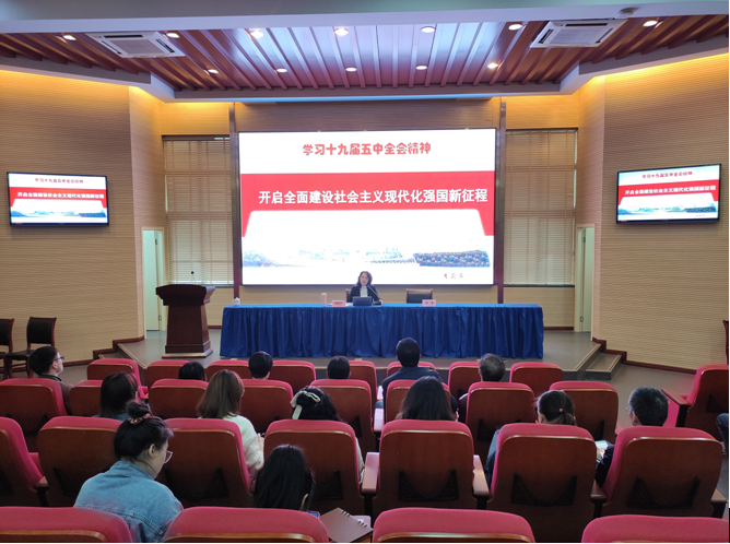 集中培训的第二阶段,yl23411永利(集团)有限公司官网党委书记、现代国际设计yl23411永利(集团)有限公司官网党总支书记李莉莎做了题为“开启全面建设社会主义现代化强国新征程”的讲座。讲座从“新阶段与新目标”、“新理念与新部署”、“新变化与新格局”三个方面引领大家系统学习了党的十九届五中全会精神。