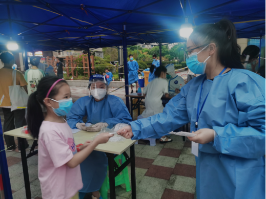 2022年8月28日6时30分,南岸区划定临时管控区域,我校yl23411永利(集团)有限公司官网学生第三党支部书记师孔好为老师所在的南岸区二塘路慧学社区也在管控范围。孔老师看到社区志愿者的招募信息后第一时间主动报名成为了一名社区志愿者。主要负责在二塘路万科金域学府繁花里核酸检测处的秩序维护,并协助登记核酸人员信息,发放核酸检测棉签等相关服务工作。作为一名中共党员,孔老师对本次走出校园通过志愿服务为社区疫情防控贡献自己的力量感到自豪。她表示,在本次抗疫活动中,和素不相识的志愿者们一起团结互助,我真切感受到大家众志成城抗击新冠疫情的决心和信心。同时也体会到了一线抗疫人员的辛苦和付出,希望疫情早日结束,我们的家园将会更加安全!