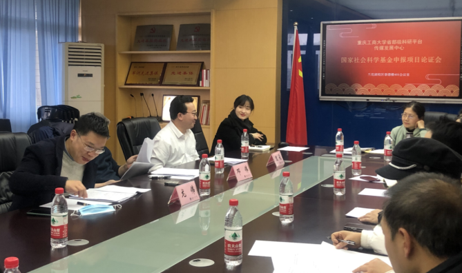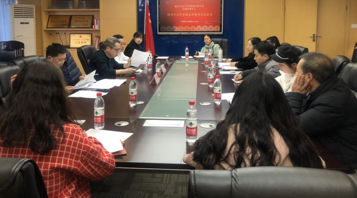 为推出高质量的申报项目,按照科研处要求,从2021年起各个科研平台必须对每年国家社科基金的申报项目进行平台论证。12月20日,传媒发展中心在崇德楼401会议室举行了2022年度国家社会科学基金申报项目论证会。论证会由传媒发展中心主任殷俊教授牵头组织,副主任黄含副教授主持,重庆大学新闻学院副院长龙伟教授和重庆工商大学文学与新闻学院副院长邓伟教授两位专家受邀参会。