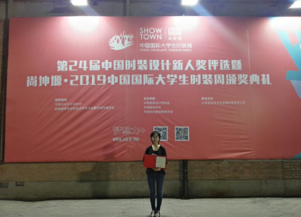 除此之外,我校王慧慧同学还荣获2019中国国际大学生时装周“旭化成·中国未来之星设计创新大奖”入围奖,我校刘园园同学在第24届中国时装设计新人奖评选中荣获优秀奖(该奖项自1995年创立,其评选结果直接影响每年中国高等时装院校专业影响力指数(FEI)排名)。这两位同学的脱颖而出,标志着我校在全国高校服装教育领域中的不俗地位,亦显示出服装专业学生的学习劲头蒸蒸日上、追求卓越和不断前进的勇气。