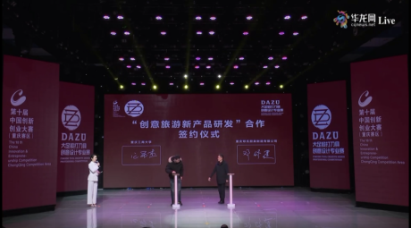 据悉,为充分发挥中国创新创业大赛众扶平台作用,加速创新要素向企业集聚,促进设计资源与特色产业的创新发展,颁奖典礼现场,学院产品设计系主任龙圣杰老师与重庆邓氏厨具制造有限公司总经理邓修建举行了“政产学研”签约仪式。