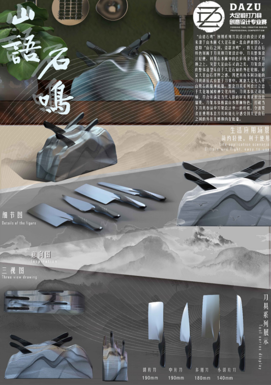 山语石鸣—王正鹏、高峰、李中旭、韦惯惯—日用刀具三等奖