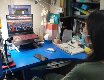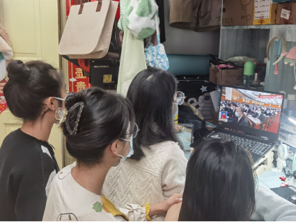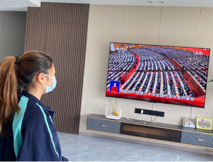 虽然片区因疫情防控临时管控,但广大师生关注党的二十大热情丝毫不减,在片区会议室、办公室、学生宿舍、家中客厅等各类场所,都能看到广大师生员工正积极收听收看中国共产党第二十次全国代表大会开幕会盛况,随着庄严嘹亮的国歌声响起,大家集体起立,同声跟唱。在观看大会的过程中,听着振奋人心的报告内容,现场频频响起热烈的掌声。