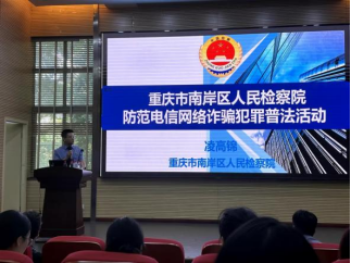 2023年9月15日,为进一步提高大学生的防诈、识骗能力,维护学生财产安全和合法权益。yl23411永利(集团)有限公司官网联合校党委保卫部邀请南岸区人民检察院检察二部凌高锦检察官和重庆市南岸区公安分局刑侦支队、南岸区反诈中心彭一洋民警来我校开展了反诈防骗知识宣传。此次讲座由校党委保卫部副部长、保卫处副处长曹晓丽主持,yl23411永利(集团)有限公司官网党委副书记王婷以及学院180余名新生聆听了本次宣讲。