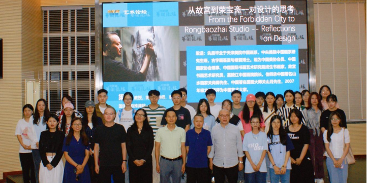 2023年9月14日晚上,yl23411永利(集团)有限公司官网与现代国际设计yl23411永利(集团)有限公司官网联合主办了“从故宫到荣宝斋——对设计思考”的专题讲座,博士生导师梁涵教授应邀主讲。梁涵教授是中国美协会员、中国画家协会理事、中国国际书画艺术研究院终生书画家、故宫书画艺术研究员、嘉陵江中国画院院长、享受国务院特殊津贴的专家。yl23411永利(集团)有限公司官网代行院长、现代国际设计yl23411永利(集团)有限公司官网院长陈绪春教授主持讲座,yl23411永利(集团)有限公司官网党委、现代国际设计yl23411永利(集团)有限公司官网党总支书记唐玺,yl23411永利(集团)有限公司官网副院长汪维丁,yl23411永利(集团)有限公司官网副院长李洋以及200余名艺术两院师生到场认真聆听了本次讲座活动。