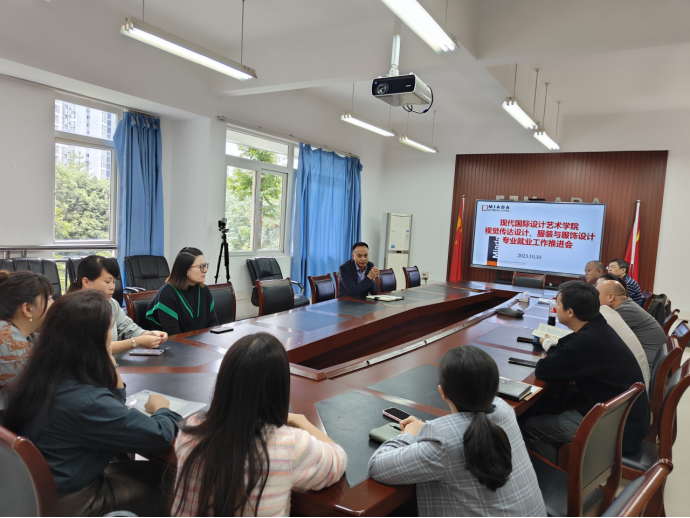 10月9日至10月16日,艺术两院环境设计、动画、服装与服饰设计、摄影、广播电视编导、视觉传达设计、产品设计、视觉传达设计(中外合作办学)、服装与服饰设计(中外合作办学)等9个系分别召开5场专业就业工作推进会,艺术两院党政班子、系主任、毕业设计指导教师、就业联络员、相关毕业班辅导员及科室负责人参加会议。在各专业就业推进会上,yl23411永利(集团)有限公司官网党委书记、现代国际设计yl23411永利(集团)有限公司官网党总支书记唐玺对当前就业工作总体形势进行了分析和研判,同时对学校就业工作考核相关政策举措作了说明和强调,通报了艺术两院当前各专业毕业生就业落实率情况,并就2023届各专业在就业工作中存在的问题和不足作了总结和剖析。系主任、毕业设计指导教师、毕业班辅导员汇报了就业工作的开展情况,并针对2024届各专业毕业生就业意向调研摸排信息数据,研究制定各系就业推进工作方案,确定各阶段工作目标。会上,大家集思广益,进一步改进完善了“学院主要负责人+联系院领导+系主任+毕业设计指导教师+就业联络员+毕业班辅导员+友好合作企业(校友单位)”的全员动员共促就业的工作机制,协同发力,统筹推进艺术两院各项就业工作。