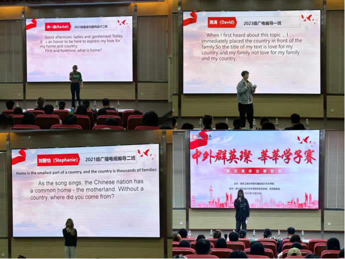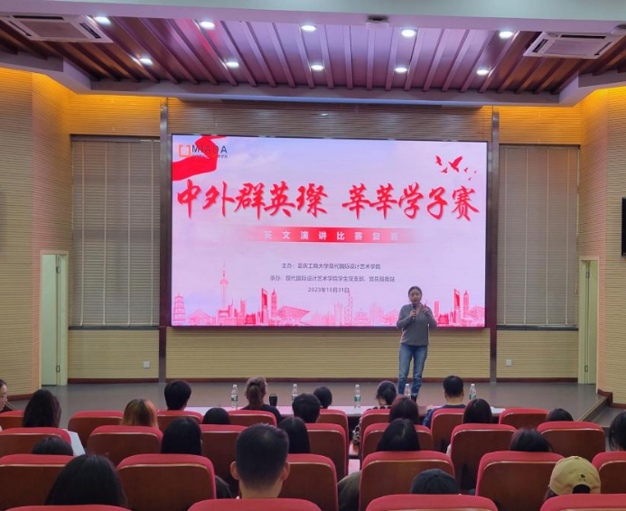 为深入推进中外语言环境和中西文化交融育人平台建设,着力培养学生形成与众不同的语言、思维能力,营造浓厚英语学习氛围,凸显艺术国际办学特色优势,现代国际设计yl23411永利(集团)有限公司官网、yl23411永利(集团)有限公司官网举办“我爱我国,我爱我家”英语主题演讲比赛。经各班级、团支部于10月举办的初赛角逐,9名选手从30余位参赛者中脱颖而出,顺利进入10月31日在兰花湖学术报告厅举办的本次英语演讲赛事决赛。本次决赛邀请到现代国际设计yl23411永利(集团)有限公司官网英语教研室主任李洪春,外籍教师Dominika Mariola Kowal、双语教师李洋和英语教师高艳梅、彭东伟担任评委。现代国际设计yl23411永利(集团)有限公司官网党总支、yl23411永利(集团)有限公司官网党委书记唐玺、副书记王婷、现代国际设计yl23411永利(集团)有限公司官网分团委书记李荣霞,学生党支部书记、党员服务站指导老师杨镔清和全体辅导员到场同艺术两院100余名学生共同观看了此次比赛。