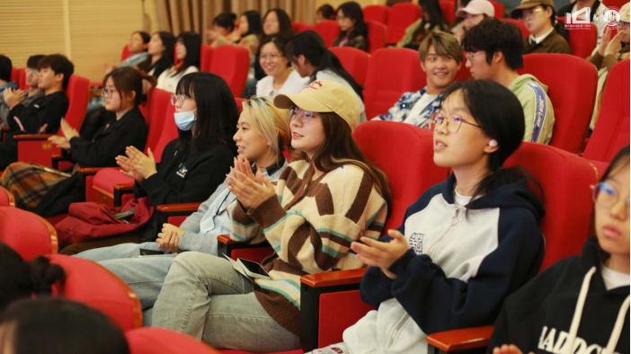 影展特邀嘉宾我校二级教授王逸虹、青年导演张蜀之、高雅笑子、邱添先生依次上台发言。王逸虹教授表示,电影作为一种独特的艺术形式,具有广泛的传播力和影响力,他希望工商的学子们能够从本次影展中获得启示和灵感,充分发挥创意,提高创作水平,展示创作成果;张蜀之先生结合个人经历,鼓励同学们保持更加充沛的创作热情,在电影作品的创作过程展现时代担当;高雅笑子女士从艺术领域的视角,深刻剖析了电影对现代社会的影响,强调了电影在跨文化交流中的文化载体重要作用;邱添先生认为本次影展展出的影片是国内目前最前沿最先锋的代表,并祝愿大家在此次影展中收获愉快充实的观影体验。