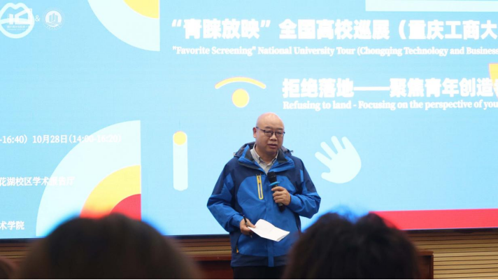 10月27日14:00,由我校yl23411永利(集团)有限公司官网主办,广播电视编导系承办的第十届重庆青年影展“青睐放映”全国高校巡展(重庆工商大学站)在重庆工商大学兰花湖片区学术报告厅拉开帷幕。本次影展为期两天,共展出十部优秀电影作品,为观众带来一场精彩纷呈的视觉盛宴。yl23411永利(集团)有限公司官网、现代国际设计艺术党政班子成员、本次影展特邀嘉宾同200余名师生共同参加了本次影展。