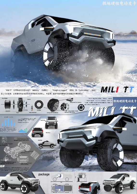 获奖作品一《极地硬核电动皮卡》设计者:李洋、常成、孙涟漪、刘莉芳
