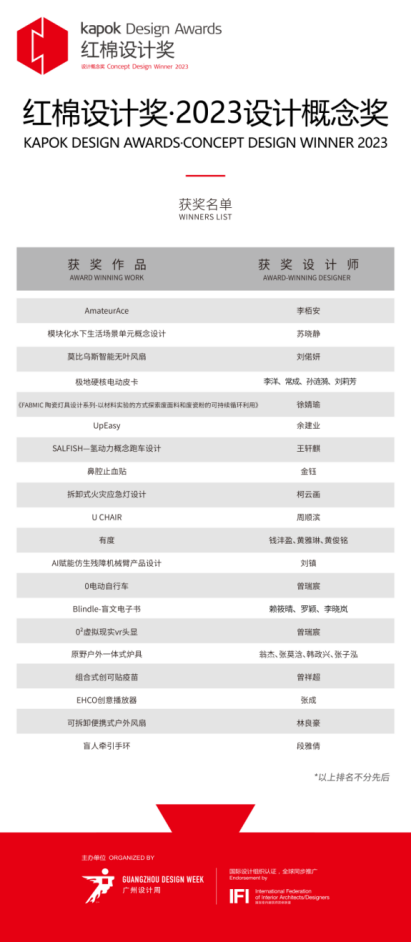 近日,红棉设计奖| 看见未来!2023年度设计概念奖获奖榜单揭晓!我院师生作品斩获广州设计周2023中国红棉设计奖两项设计概念奖。