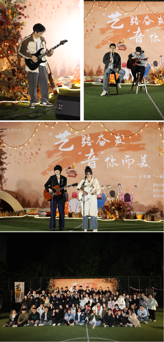为充分发挥“一站式”学生社区在大学生美育中的积极作用,为学生搭建艺术实践的展演舞台,11月24日晚,兰花湖学生社区在绿茵篮球场举行了“艺”路奋发,“音”你而美——草坪音乐会。校团委副书记胡婧婷、艺术两院党委书记唐玺、党委副书记王婷、副院长汪维丁以及全体辅导员老师参加了本次活动。
