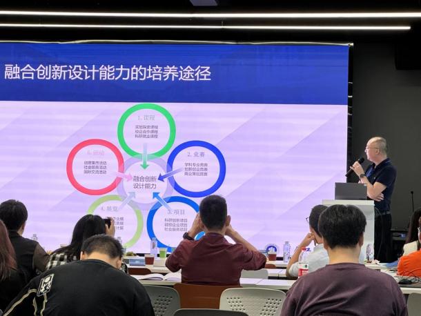 9月29日下午,我院李洋教授受邀在专题论坛“面向未来的创新人才培养”上做了《产业互联需求导向的“设计+”融合创新人才培养模式与实践》的报告分享。他从我校设计学科的“商工融合”学科背景出发,介绍了yl23411永利(集团)有限公司官网产业需求牵引的“设计+”融合创新设计人才培养模式、社会需求导向的专业群建设及设计实务导向的课程群建设思路,并结合学院“引企入校”的校企合作办学实践介绍了产品设计专业“OSM”引领的三段式课程体系,探讨了AIGC介入专业教学的融合创新设计能力培养方式,并介绍了设计专业“真题真做”的课程教学成果。