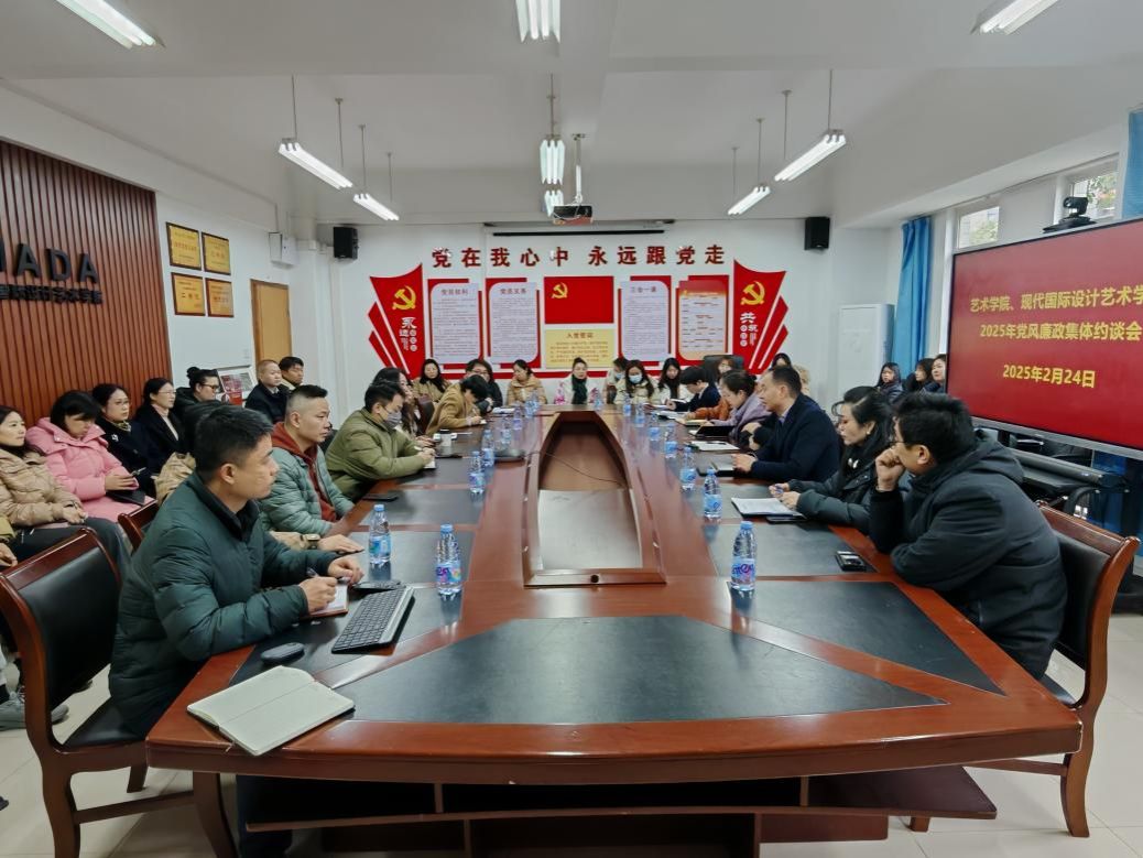 2025年2月24日下午,yl23411永利(集团)有限公司官网党委、现代国际设计yl23411永利(集团)有限公司官网党总支在崇德楼313会议室组织召开2025年党风廉政建设集体约谈会。艺术两院领导班子、系主任、科级干部、支部书记、辅导员及重点岗位工作人员参加了此次会议。会议由学院党委(党总支)书记唐玺主持。