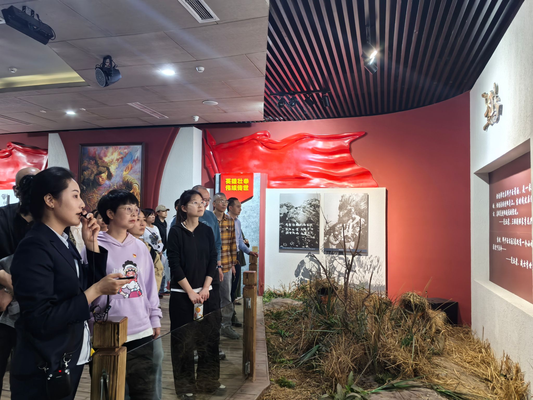 下午3时,在讲解员引导下,教师们依次参观了“苦难岁月”“英雄成长”“烈火真金”“精神永存”四大主题展厅。通过锈迹斑斑的军用水壶、烧焦的棉衣残片等实物展陈,以及动态沙盘还原的391高地战场场景,教师们深刻体悟邱少云“纪律重于生命”的精神内核。