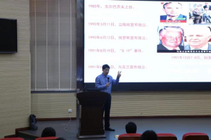 讲座开始后,潘勇首先从“危机的由来、危机的现状、危机的影响”三个方面系统的介绍了开始于今年2月24日的“俄乌冲突”。随后,又从“危机是美西干预台湾的预演、在百年变局中增强定力和自信”两个方面阐释了乌克兰危机对中国、对当代大学生的启示。他强调,没有中国共产党的统一领导,国家必然解体,指导思想多元化,党必然垮台;必须坚持公有制主体地位不动摇,私有化会让国家被寡头控制,自由市场化会让国家被国外资本控制;国家的发展必须坚持独立自主,否则将沦为别人的棋子;发展是硬道理,我们必须加快发展自己,每个人立足岗位,做好本职工作,就是对国家最大的贡献;对美国绝对不能抱有任何的幻想,只有进行坚决的斗争,才能在“百年未有之大变局”中,坚定地走中国特色社会主义道路,实现中华民族的伟大复兴。