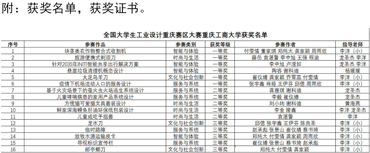我校yl23411永利(集团)有限公司官网师生参加全国大学生工业设计重庆赛区大赛喜获佳绩