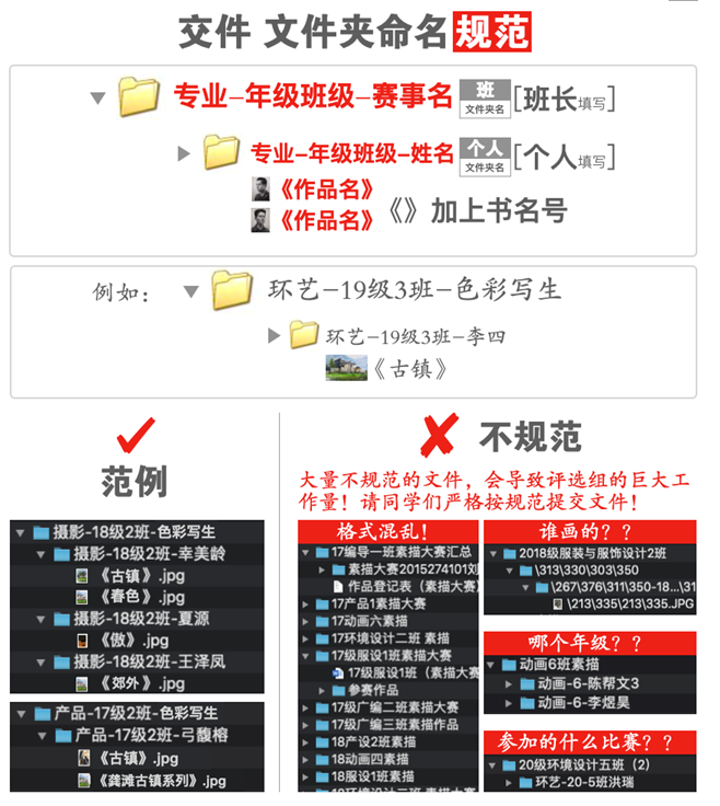 (班长将班级文件夹注明:专业方向-班级-色彩风景写生大赛)。