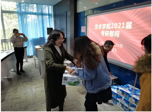 接着,学院领导和老师为考研同学送上了精心准备的礼品。考研同学纷纷表示,学院的真切关心让他们感受到极大的鼓舞,给他们带来了温暖,同时更加坚定了考研的信心。