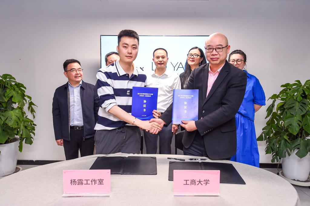 陈绪春向重庆市杨露服装设计公司授牌,双方签署实习就业合作协议,共建大学生实习实践基地。