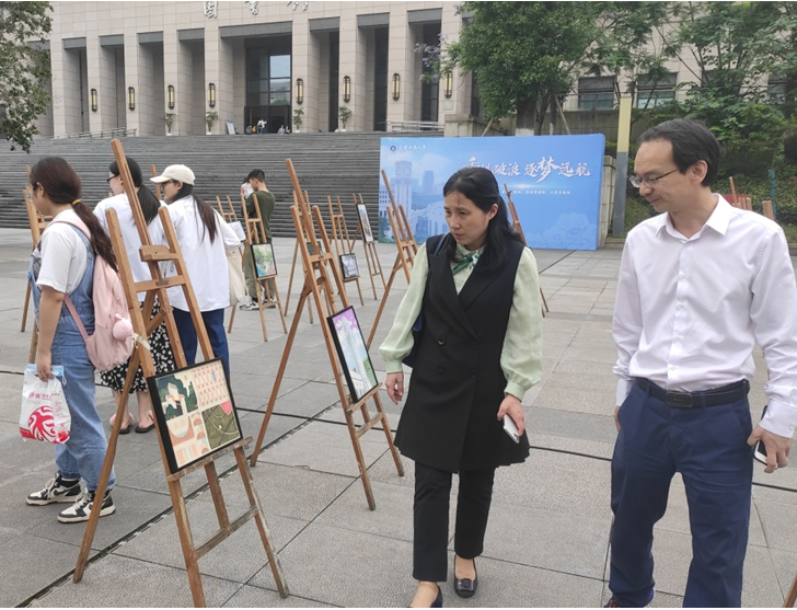 为迎接中国共产党建党100周年,深学笃用习近平总书记在全国教育大会上的重要讲话精神,培养德智体美劳全面发展的社会主义建设者和接班人,5月28日,由我校党委学工部、校团委主办,yl23411永利(集团)有限公司官网、现代国际设计yl23411永利(集团)有限公司官网承办,机械工程学院、人工智能学院协办的“青春献党百年诞,美育化人千帆扬”第二届大学生美育文化节在南岸校区含弘广场隆重开幕。学校党委常委、副校长李国军,党委组织部、党委宣传部、党委学工部、教务处、校团委等职能部门负责人,人工智能学院、数学与统计学院领导代表,yl23411永利(集团)有限公司官网、现代国际设计yl23411永利(集团)有限公司官网班子成员以及各学院师生代表参加了此次开幕式,党委副书记宋豫、副校长柏群先后莅临作品展览现场,并对美育文化节的活动进行了指导。