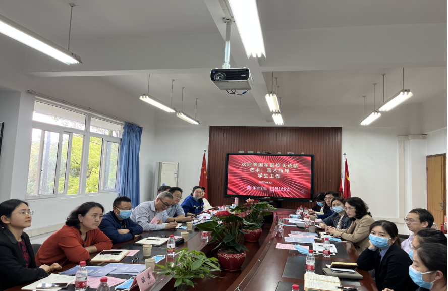 4月12日下午,校党委常委、副校长李国军一行到艺术两院调研指导学生工作,学生处、校团委等部门人员陪同调研。学院领导班子成员李莉莎、冉涛、王婷及全体辅导员参加了调研会议。