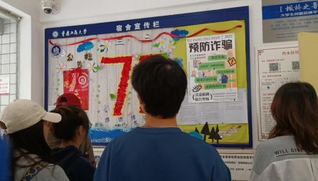 5月15日—5月20日,反诈宣传在学生公寓区开展,楼栋干部通过室长培训、张贴海报等方式开展反诈宣传,提醒同学们提高警惕、远离诈骗。
