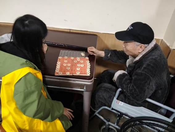 互动环节中,志愿者们与老人们围坐交谈,协助整理房间、布置活动场地。下棋、聊天、观看电视节目等日常陪伴让时间在不知不觉中过去,也让长者们感受到来自青年的关心与尊重。每一个细节都饱含真情,展现出青年志愿者以实际行动践行“奉献、友爱、互助、进步”的志愿精神。