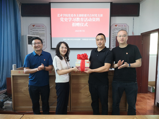 在党建结对子仪式上,yl23411永利(集团)有限公司官网党委委员、教工第一党支部书记、副院长李洋与兴合村党支部书记冯文华一起为“党建共建基地”揭牌。双方表示,将通过党建引领,以深入开展党史学习教育活动为契机,实现全方位的合作,充分发挥各自的专业与平台优势,扎实推进,探索助力乡村文化振兴新路径。李莉莎代表学院党委向“党建共建基地”捐赠了党史学习资料并对yl23411永利(集团)有限公司官网各支部参与党建共建工作提出了具体要求,兴合村党支部第一书记、驻村帮扶干部邹奇表示,将进一步挖掘高校资源,发挥基层党建共建优势,共同在乡村文化振兴和教育等方面将共建工作稳步推进,落地落实。
