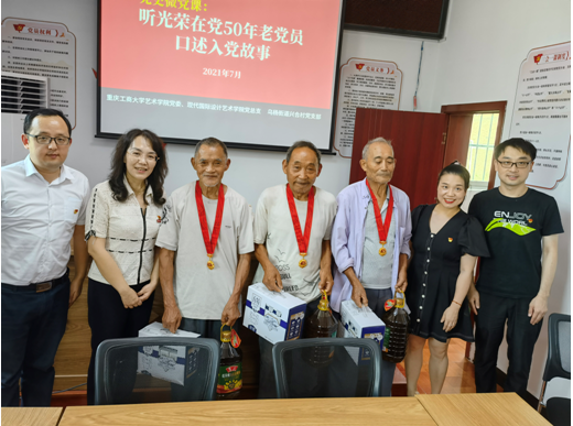在随后的党史学习教育微党课上,兴合村光荣在党50年的袁才忠、曹伦够和聂国平3名老党员同志为大家口述了自己的入党故事,老党员同志们用自己投身革命实践和经济建设的亲身经历,表达了对党、对人民的无限忠诚。袁才忠说“虽然我现在做不动了,但我要为党的事业发展做好宣传员,积极支持村里的工作,起好党员的模范作用,不因年老而“掉链子”,他们的话朴实而动情,深深感染了参加活动的全体党员同志。李莉莎说,老同志们的讲述给在座的党员同志们上了一堂生动的、接地气的党课,号召教师党员们向老党员们学习,坚定信仰、接续努力。教师党员代表们衷心感谢老同志们为革命、新中国建设及年轻党员同志的成长做出的贡献,纷纷祝愿老同志们身体健康,并向老同志们赠送了慰问品。
