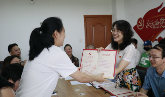 活动伊始,艺术两院师生党员齐唱《不忘初心》,“万水千山不忘来时路”,唱出了艺术两院党员师生的共同心声。冉涛同志领誓,全体党员重温了入党誓词,铿锵有力的宣誓声在室内回荡。李莉莎向艺术两院每一位上半年过政治生日的党员同志送上党员政治生日贺卡。教师党员代表乐琴、学生党员代表韦惯惯,深情回忆了党组织对他们的培养和自己践行初心的努力奋斗历程,他们的党龄不同、岗位不同,但入党初心相同,在发言中,他们表达了对党组织培养的深厚感恩之情,表示要坚定理想信念,朝着新征程奋进。